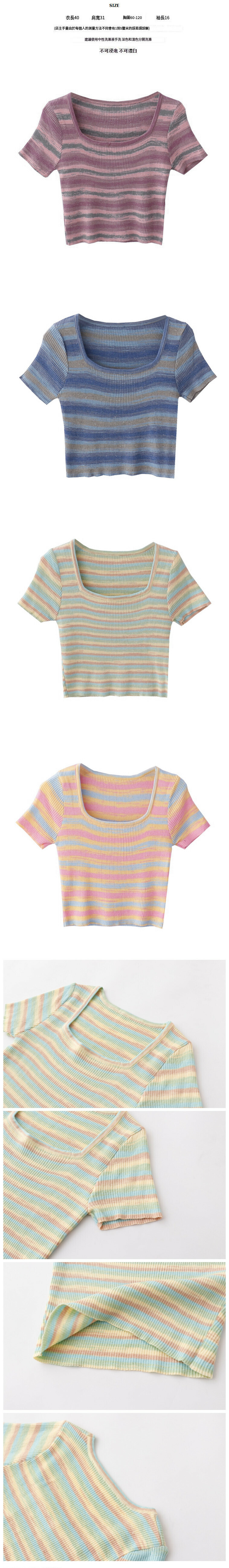 熱賣方領條紋針織T恤【粉黃藍】【均碼】