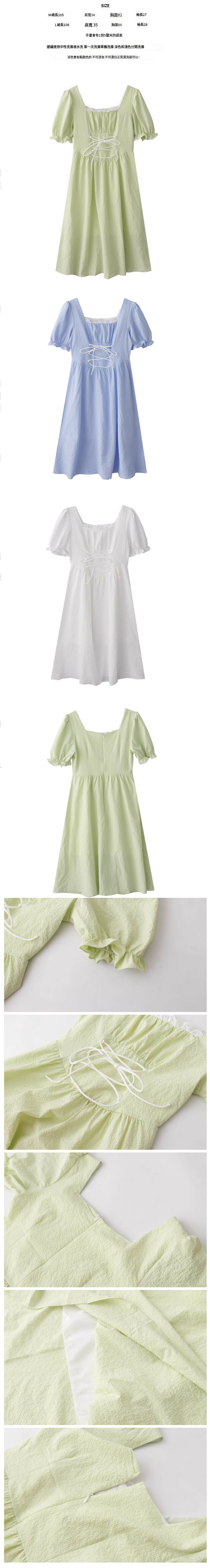 熱賣方領綁帶收腰連衣裙【白色】【L碼】