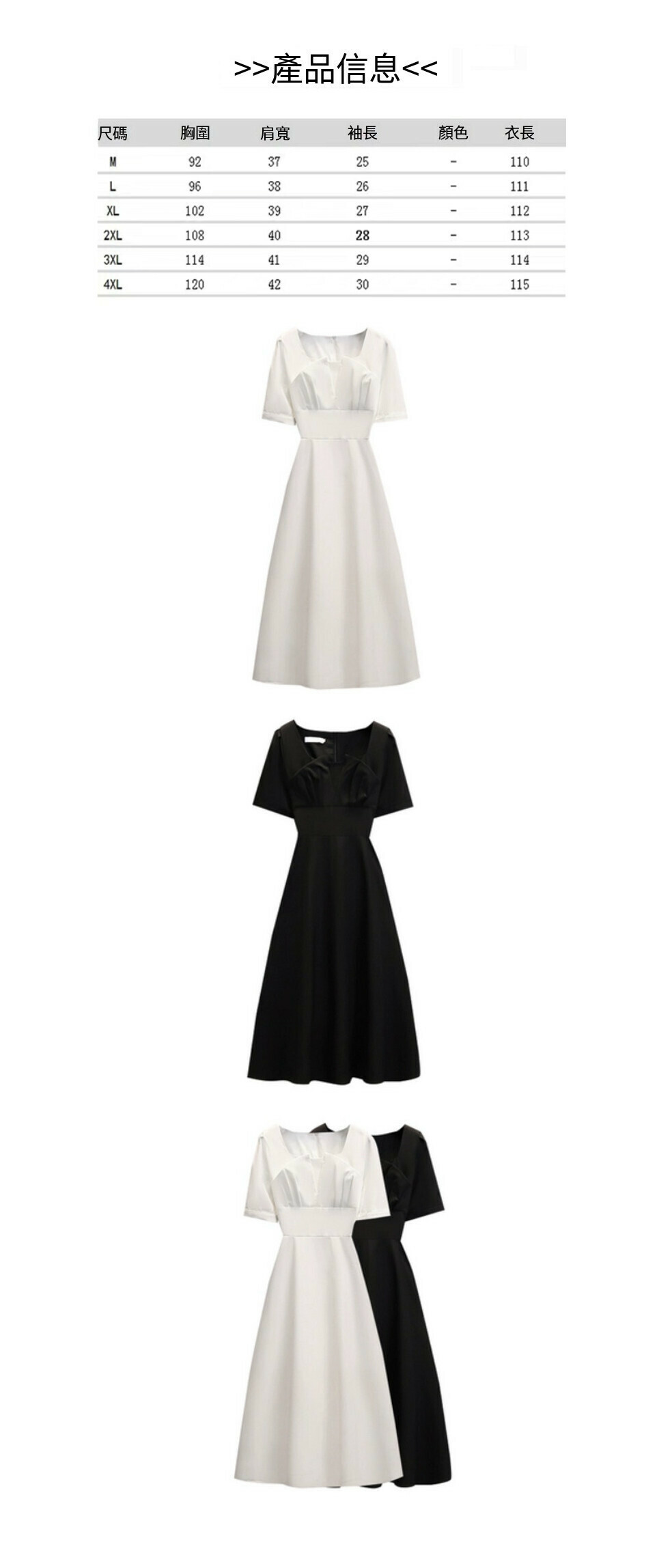 熱賣方領收腰連衣裙【黑色】【M-4XL碼】(下單後請聯絡客服確認發貨尺碼)