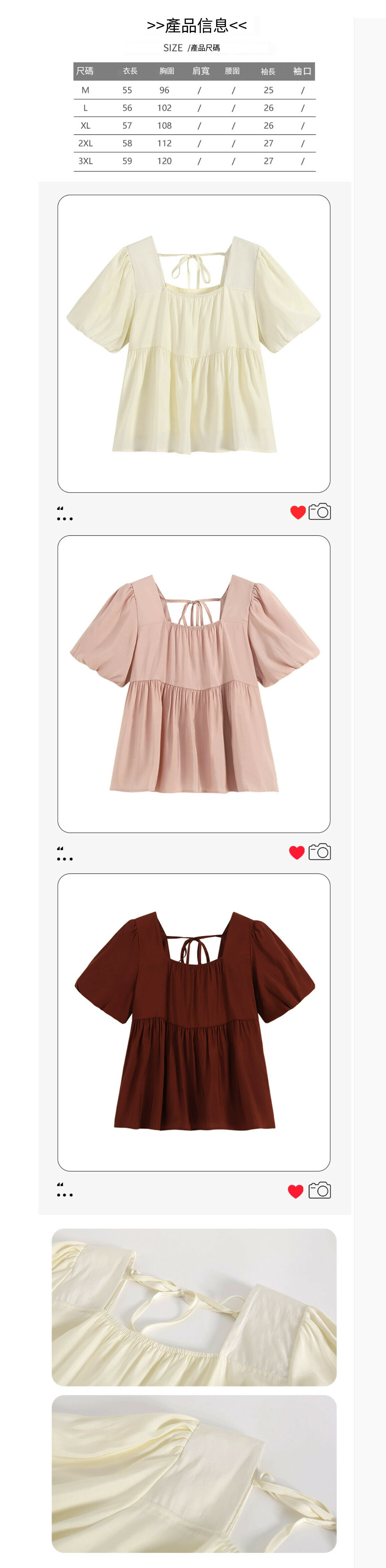 熱賣方領雪紡短款上衣【粉色】【M-3XL碼】(下單後請聯絡客服確認發貨尺碼)