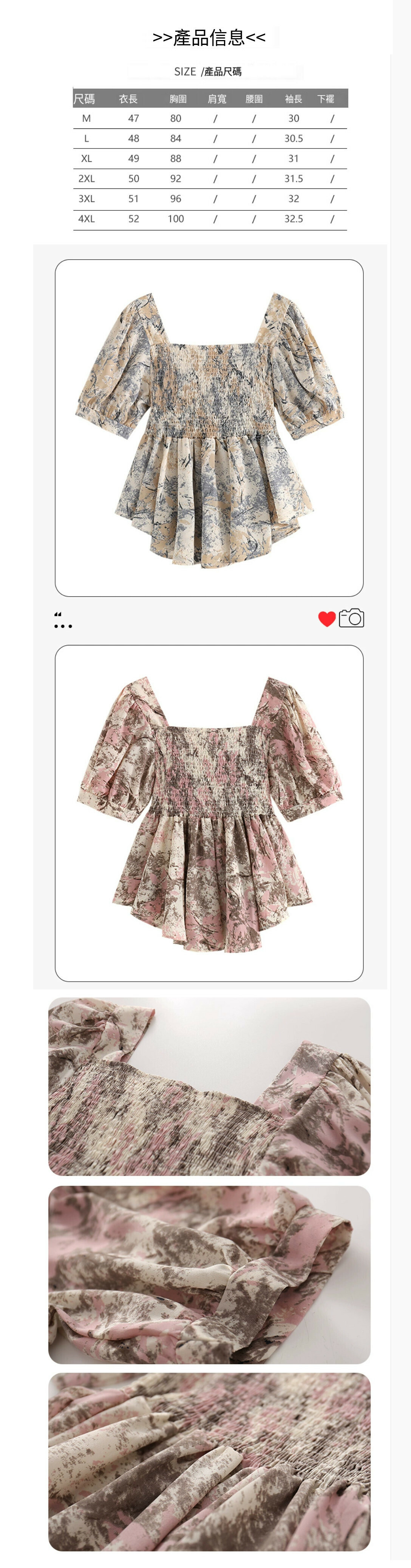 熱賣方領碎花雪紡短袖上衣【粉花】【M-4XL碼】(下單後請聯絡客服確認發貨尺碼)
