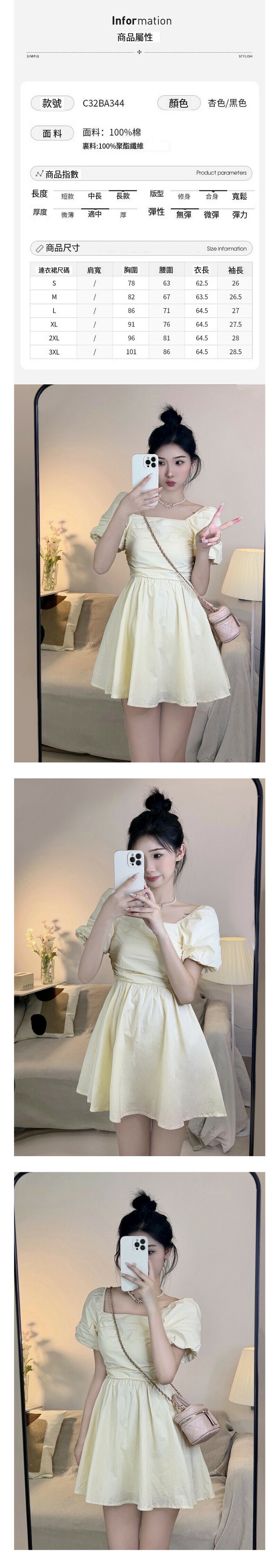 熱賣方領泡泡袖連衣裙(綠色 S碼-XXL碼)(下單後請聯絡客服確認發貨尺碼)