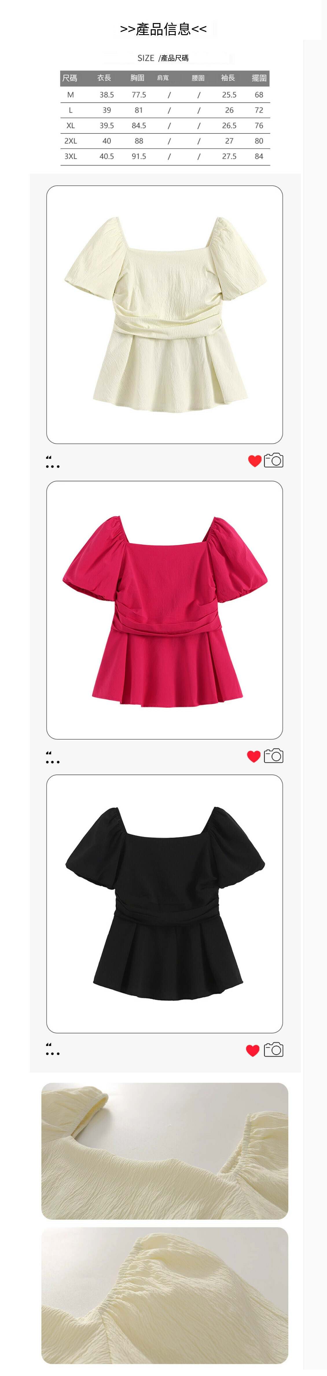 熱賣方領泡泡袖上衣【火龍果】【M-3XL碼】(下單後請聯絡客服確認發貨尺碼)