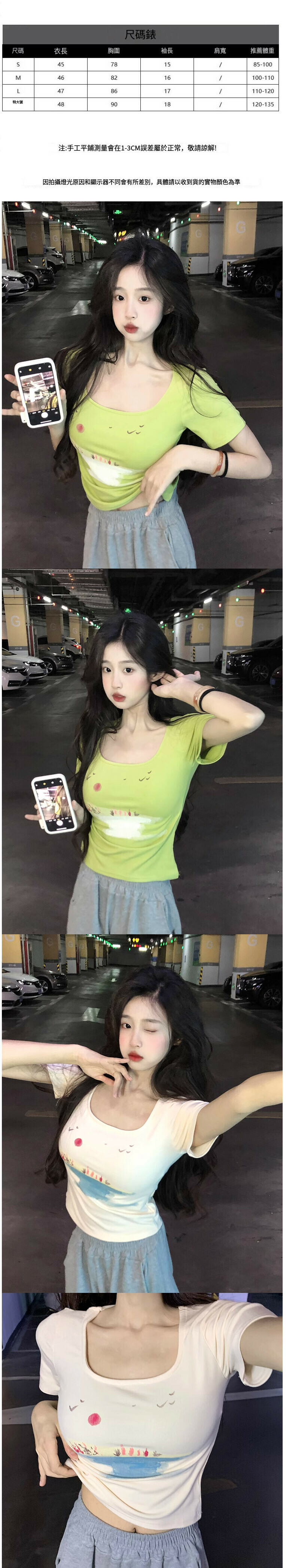 熱賣方領正肩短袖T恤【杏色】【S-XL碼】(下單後請聯絡客服確認發貨尺碼)