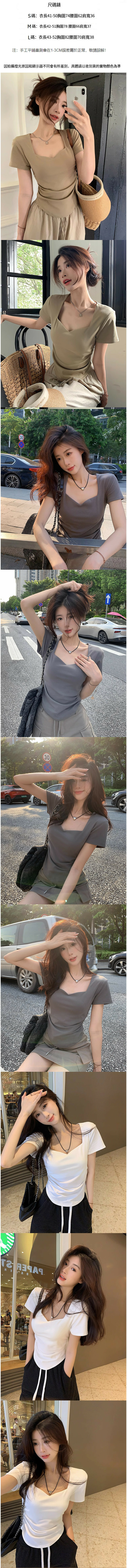 熱賣方領正肩短袖T恤【灰色】【S-L碼】(下單後請聯絡客服確認發貨尺碼)