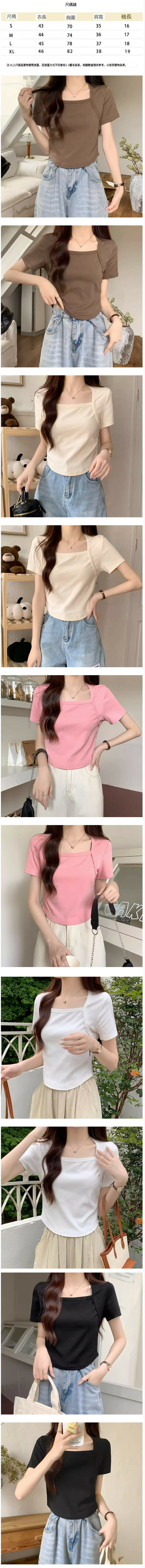 熱賣方領正肩短袖T恤【粉色】【S-XL碼】(下單後請聯絡客服確認發貨尺碼)