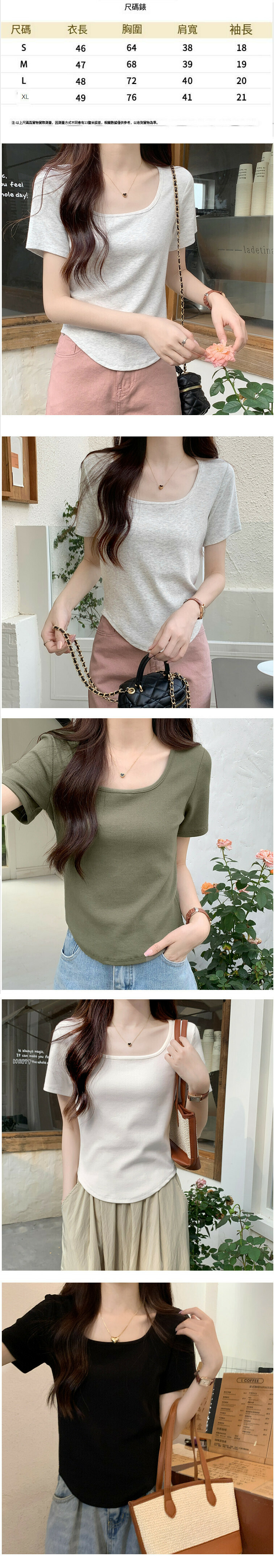 熱賣方領短袖T恤【白花色】【S-XL碼】(下單後請聯絡客服確認發貨尺碼)