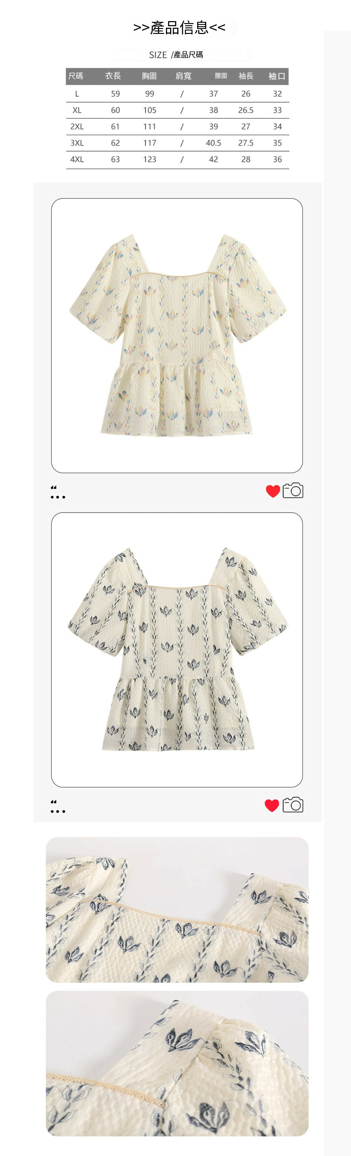 熱賣方領甜美短袖襯衫【綠色】【L-4XL碼】(下單後請聯絡客服確認發貨尺碼)