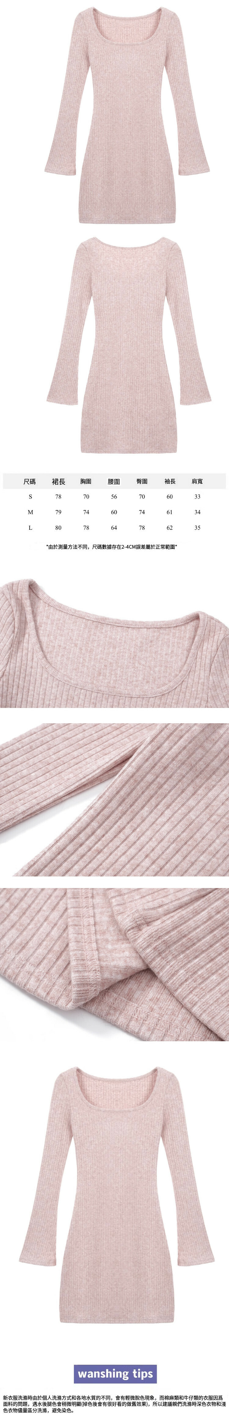 熱賣方領喇叭袖針織連衣短裙(粉色)(S-L碼)(下單後聯絡客服確認發貨尺碼)