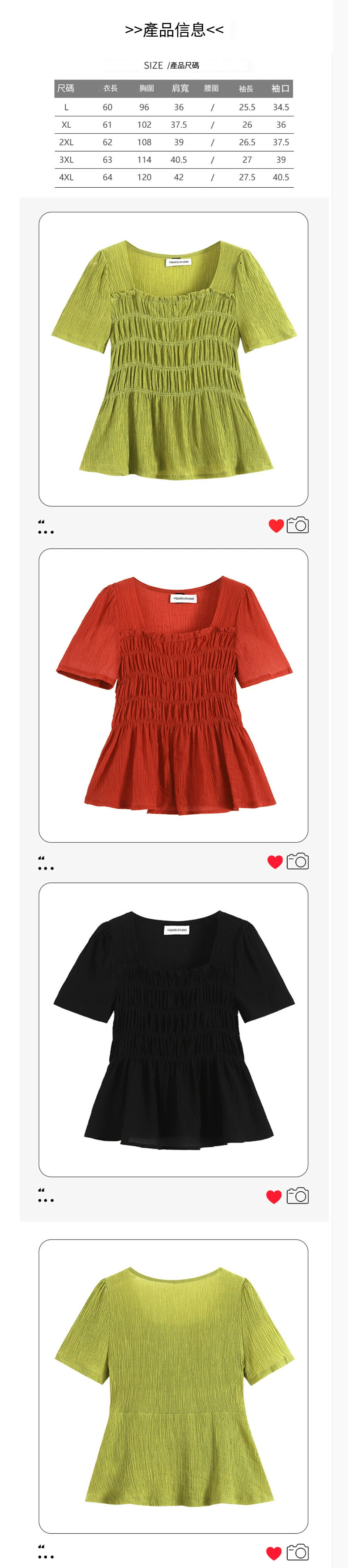 熱賣方領木耳邊短袖上衣【綠色】【L-4XL碼】(下單後請聯絡客服確認發貨尺碼)