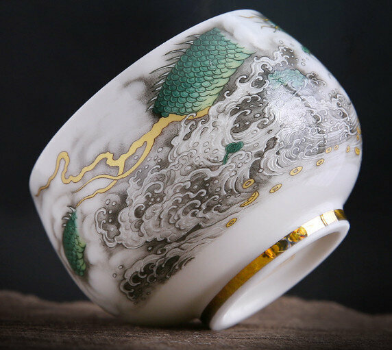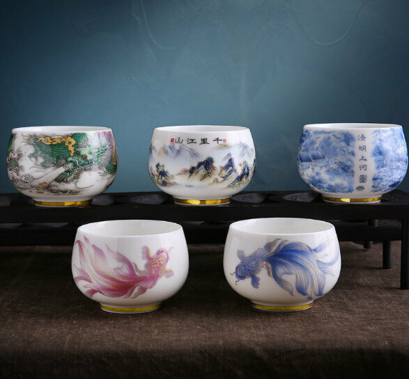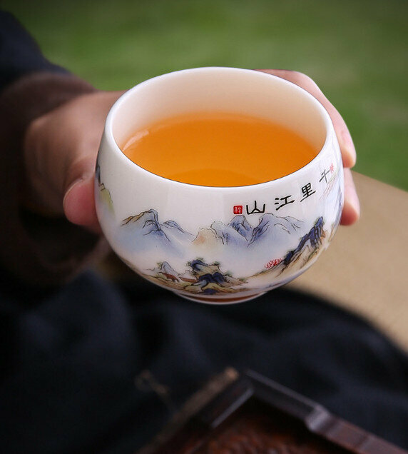 熱賣【1個裝】羊脂玉白瓷茶杯(千裏江山禪定杯)【尺寸:口徑7cm高5.3cm 容量180ml】