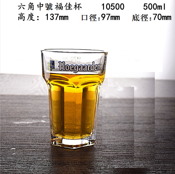 熱賣【1只】家用玻璃酒吧杯子(中號福佳杯貼花 500ML)