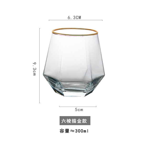 熱賣【1個】六棱水杯威士忌杯(貨號:金邊)