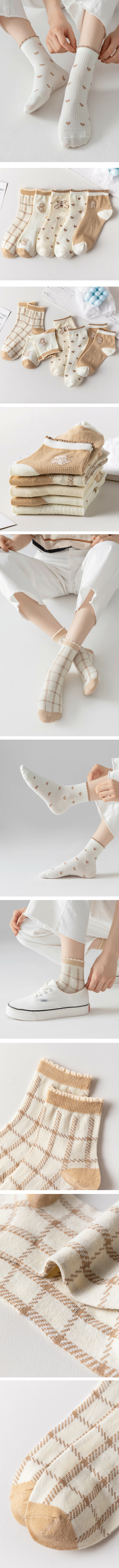熱賣【10對裝】中筒運動襪(中筒花邊小熊)(顏色隨機)