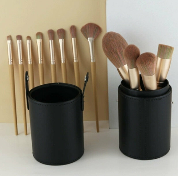 熱賣12支化妝刷套裝初學者(12支原木色加黑桶)