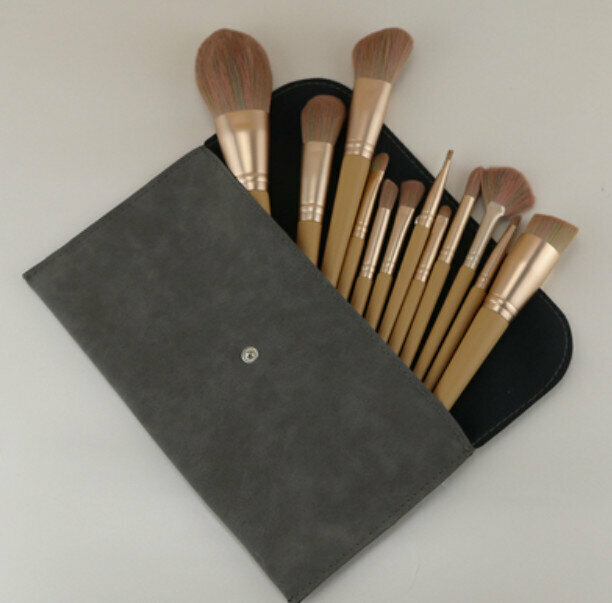 熱賣12支化妝刷套裝初學者(12支原木色加紅桶)