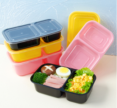 熱賣(150套裝)一次性方形雙格外賣打包餐盒(粉色-四六分)(容量:750ml)(尺寸:20cm*11.6cm*5cm)