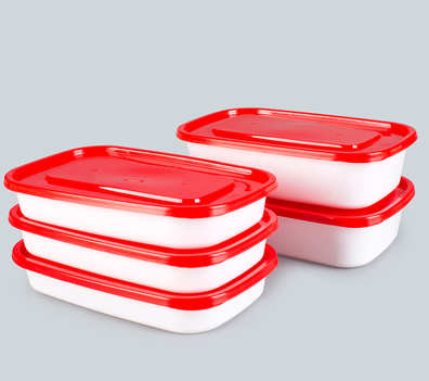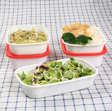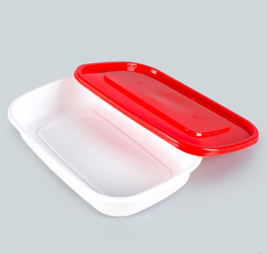 熱賣(150套裝)一次性方形帶蓋外賣打包盒(白底紅蓋)(規格:800ml)(尺寸:20.4cm*13.4cm*4.1cm)
