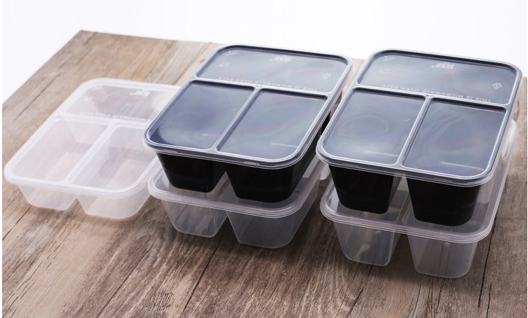 熱賣(150套裝)一次性方形三格外賣打包餐盒(透明色)(容量:YK600ml)(尺寸:17cm*4.3cm*12.5cm)