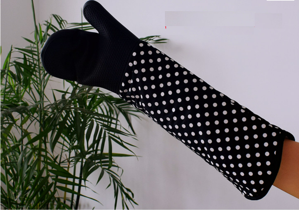 熱賣2只矽膠全棉隔熱防燙手套(黑色)(尺寸:長55CM)