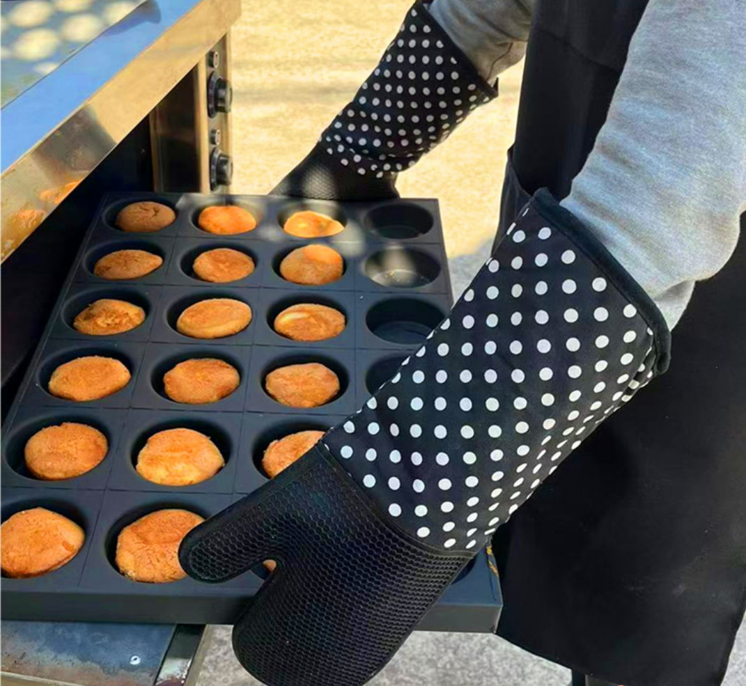 熱賣2只矽膠全棉隔熱防燙手套(綠色)(尺寸:32*19CM)