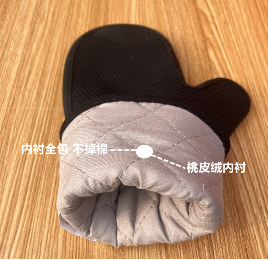熱賣2只矽膠全棉隔熱防燙手套(灰色)(尺寸:35*14CM)
