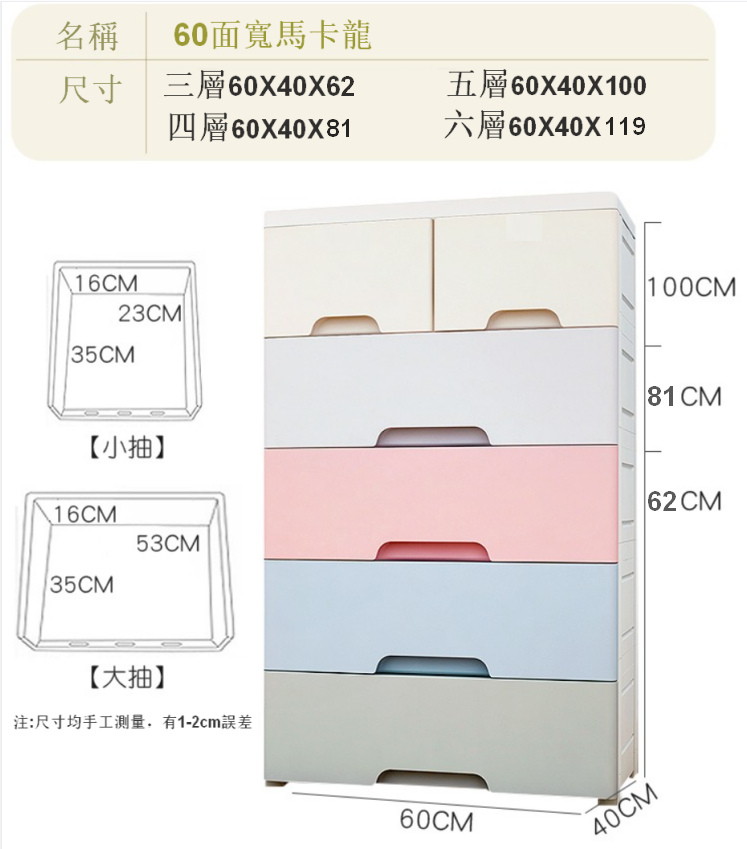 熱賣【3層】特大號抽屜式塑膠加厚收納櫃(60面寬 馬卡龍無鎖款)