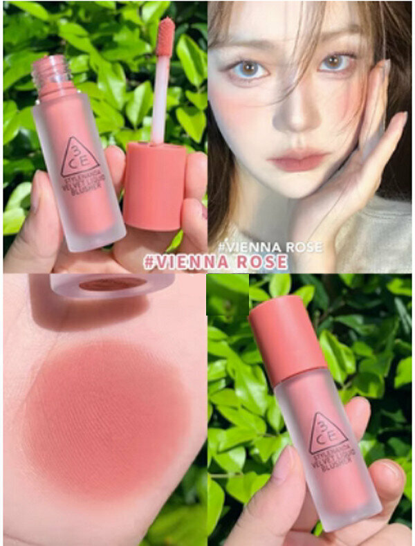 熱賣3CE情調單色腮紅/高光一體修容盤-液體腮紅#VIENNA ROSE 玫瑰紅茶+美妝蛋