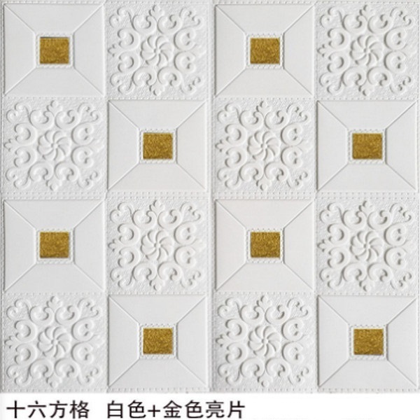 熱賣3d立體自粘防水壁紙裝飾墻紙墻貼【16方格白色+玫瑰紅亮片】【35CM*35CM*5MM】