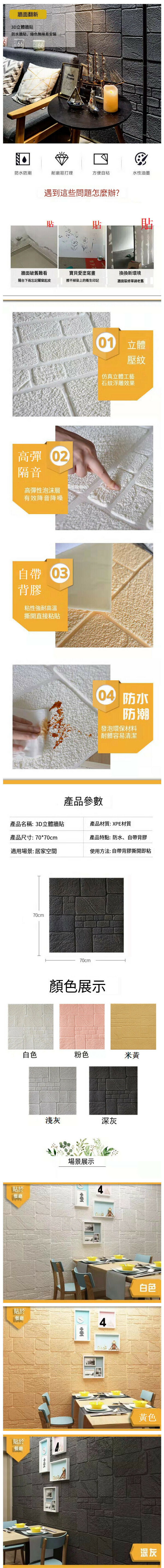 熱賣3D立體強膠防水防油自粘墻貼【文化石淺藍】【70*70cm*5mm】