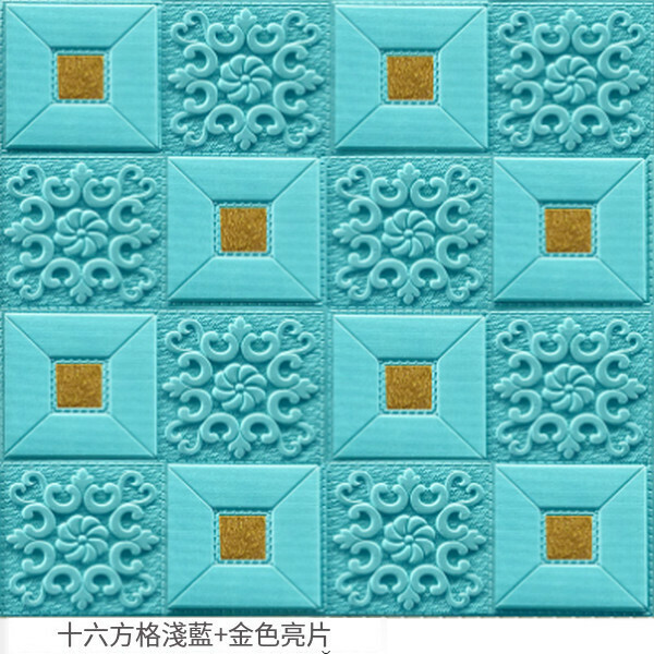 熱賣3d立體自粘防水壁紙裝飾墻紙墻貼【16方格白色+藍亮片】【35CM*35CM*5MM】