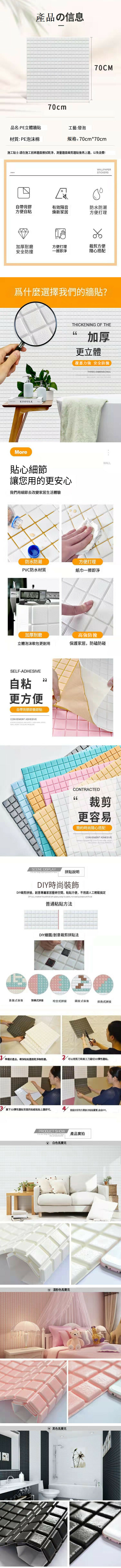 熱賣3d立體防水防潮馬賽克自粘墻紙墻貼【馬賽克白色】【35cm*70cm*8mm】