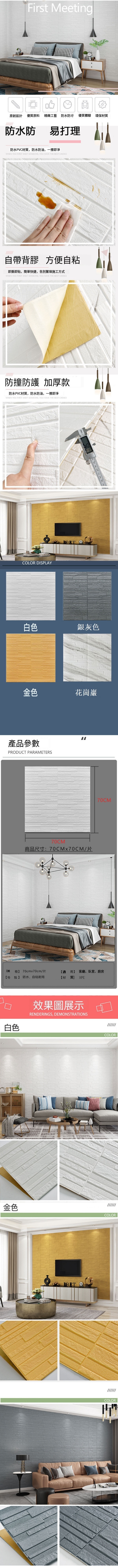 熱賣3d立體防水防潮墻貼自粘墻紙【小巖石金色】【70cm*70cm*5mm】