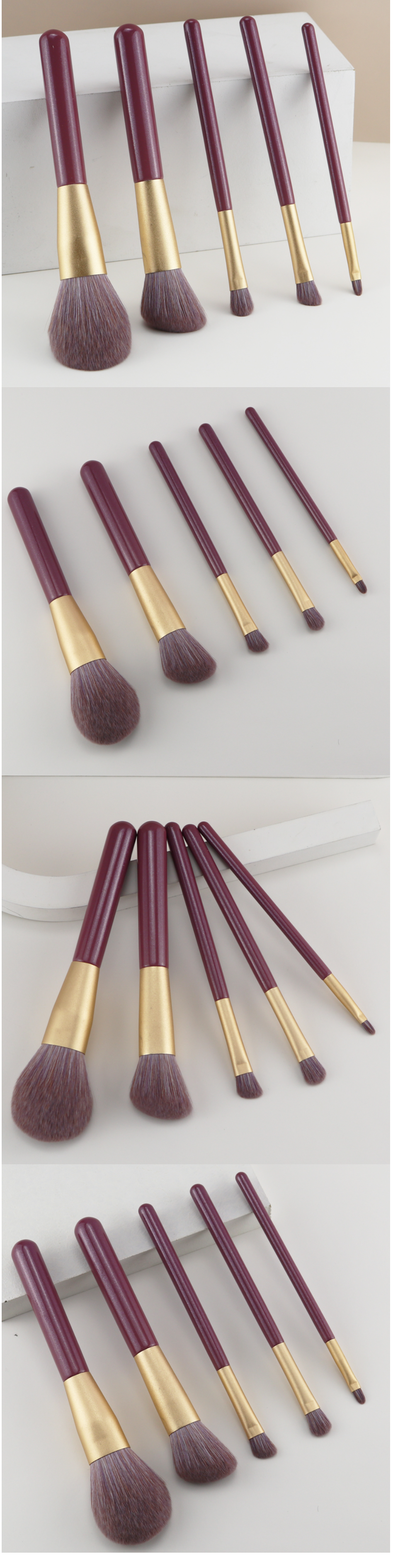 熱賣【5支】化妝刷套裝 (紫紅色+紫色收納袋)