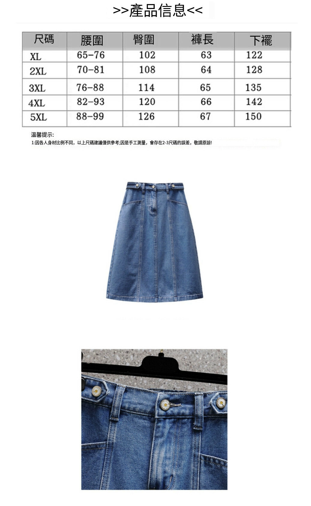熱賣A字牛仔半身裙【深藍色】【XL-5XL碼】(下單後請聯絡客服確認發貨尺碼)