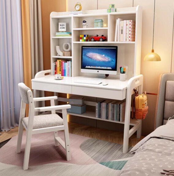 熱賣全實木書桌書架一體學習桌 電腦桌( 藍色書桌+升降椅)(尺寸:100*60*155cm)