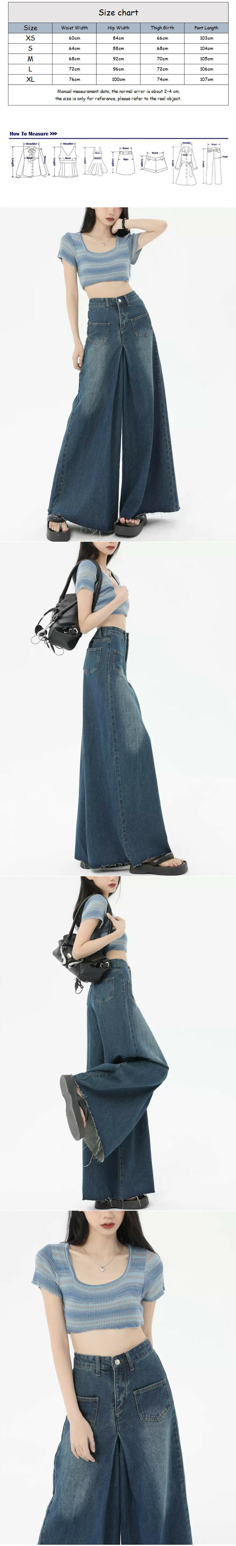 熱賣美式複古高腰闊腿超大牛仔褲裙子休閒寬鬆牛仔長褲(圖片色)(S-XL碼)