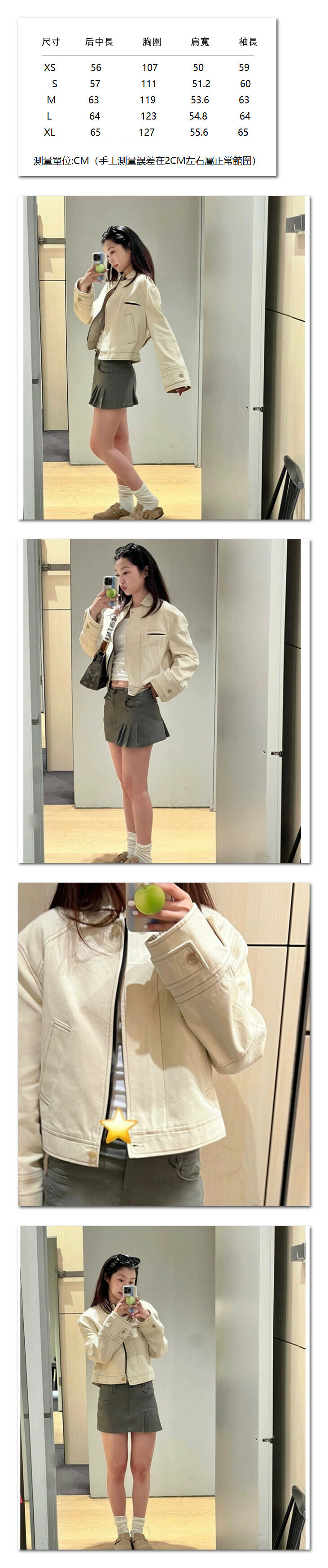 熱賣美式復古短款外套 休閒夾克上衣(淺米色)(尺碼:S/M/L/XL)(下單後聯絡客服確認發貨尺碼)