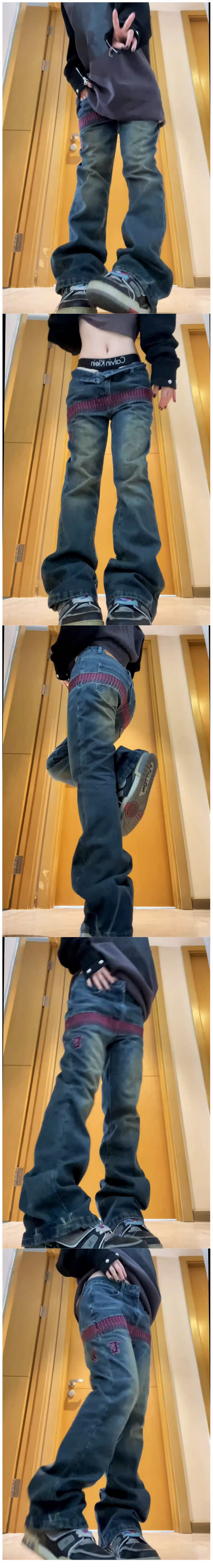 熱賣美式vibe復古高街子彈刺繡牛仔褲女國潮hiphop寬鬆顯瘦直筒褲(下單後聯絡客服確認發貨尺碼)