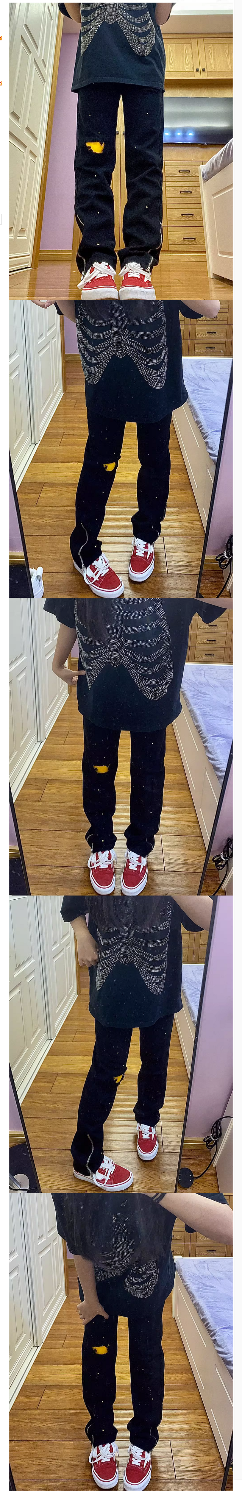 熱賣美式vibe復古貼布破洞牛仔褲女高街嘻哈hiphop直筒褲(下單後聯絡客服確認發貨尺碼)