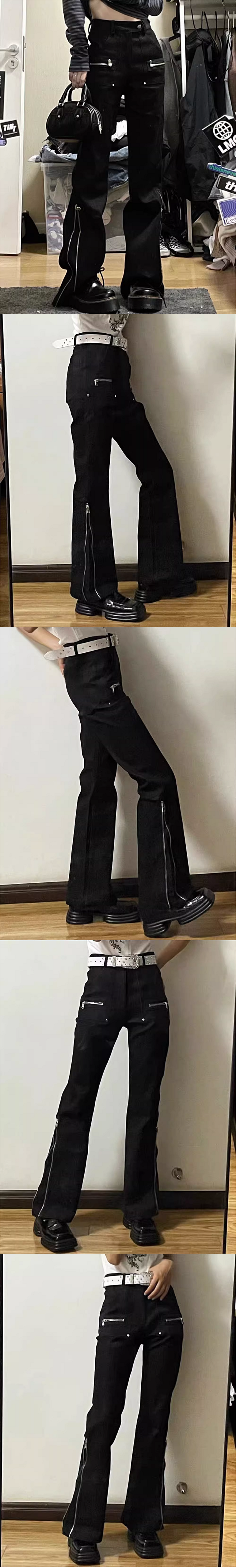 熱賣美式vibe復古口袋拉鍊牛仔褲女高腰顯瘦辣妹設計感開叉闊腿長褲潮(下單後聯絡客服確認發貨尺碼)