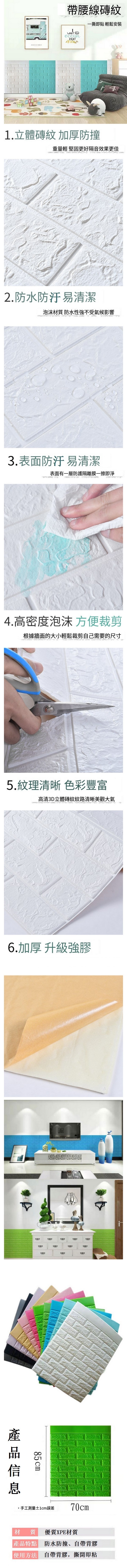 熱賣防撞泡沫軟包自粘3d立體墻貼腰線瓷磚貼壁紙【淺藍色】【70cm*85cm*7mm】