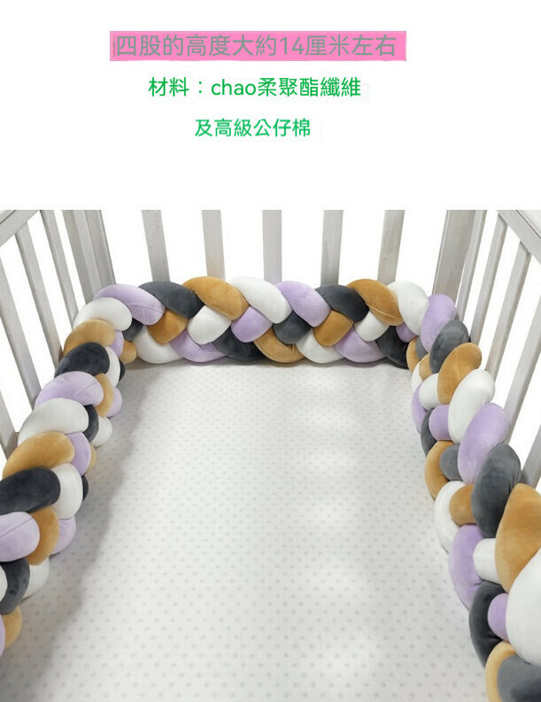 熱賣防摔防撞麻花辮床圍 抱枕(NO1 白+紫+深灰+肉黃色)(4股2.2米)