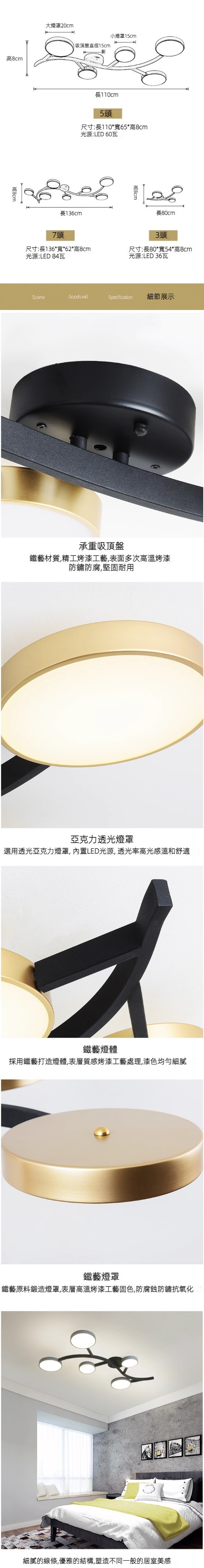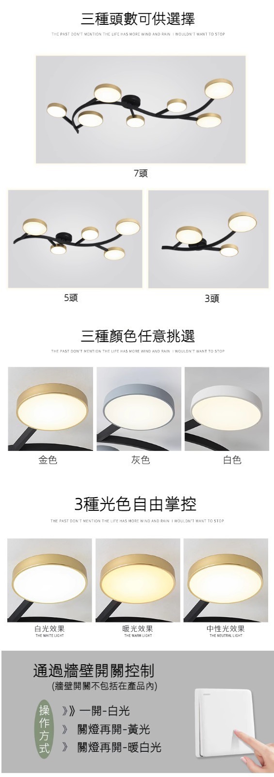 熱賣藝術樹葉造型吸頂燈(3頭-金色/三色變光)