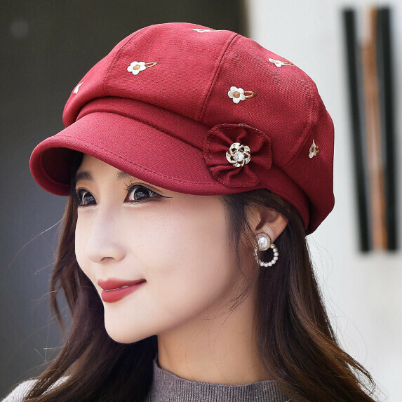 熱賣秋冬季八角帽女(酒紅色)