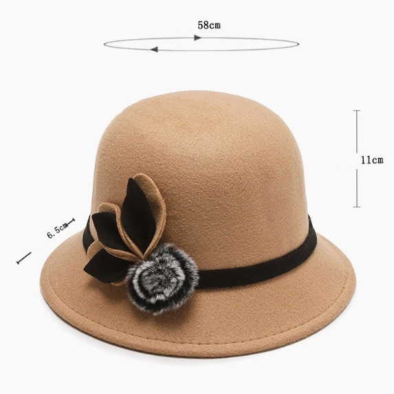 熱賣秋冬款呢子禮帽女(藏藍色)