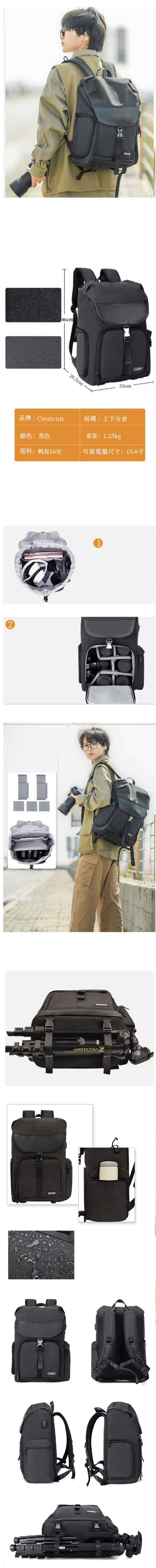 熱賣雙肩帆布相機包(CN黑色(1機5鏡+上下分倉+側開取機+可綁脚架))