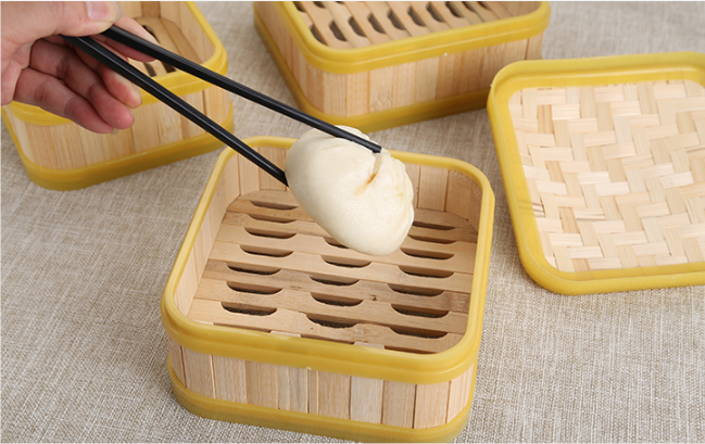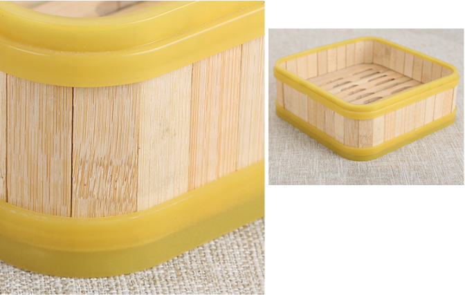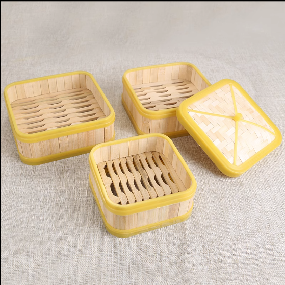 熱賣塑膠邊竹制正方形蒸籠(五籠壹蓋)(規格:14.5CM-22CM)(下單後請聯絡客服確認發貨尺寸)