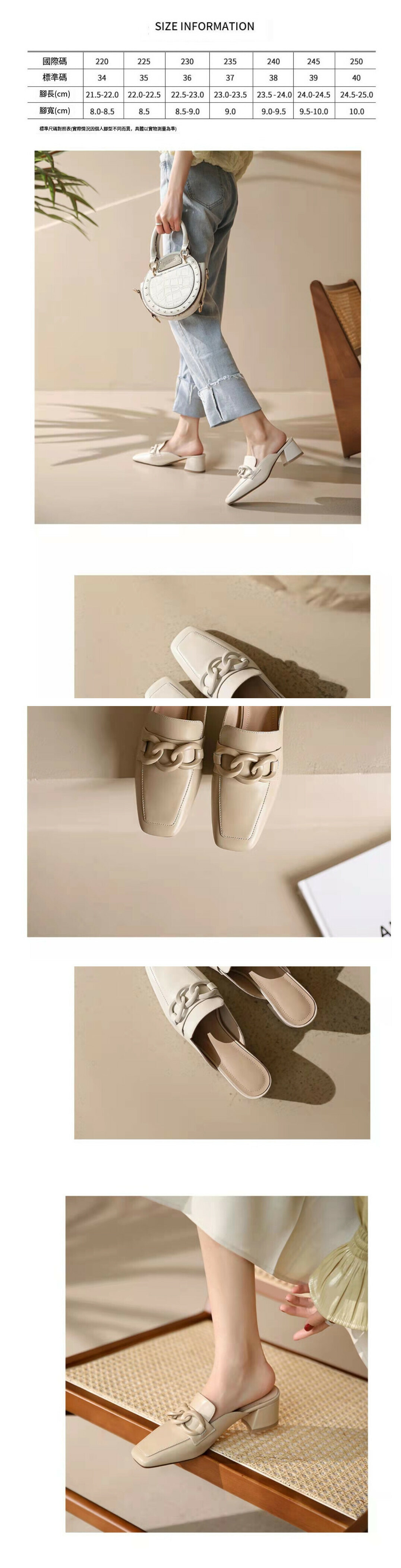 熱賣包頭中跟拖鞋【米白色】【34-40碼】(下單後請聯絡客服確認發貨尺碼)