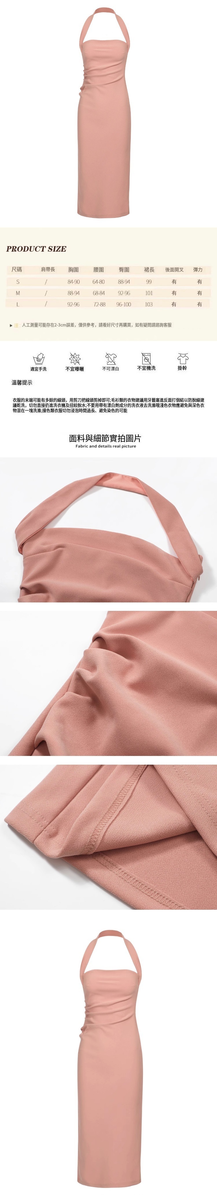 熱賣一字領掛脖抹胸連衣裙(橘粉色)(S-L碼)(下單後聯絡客服確認發貨尺碼)